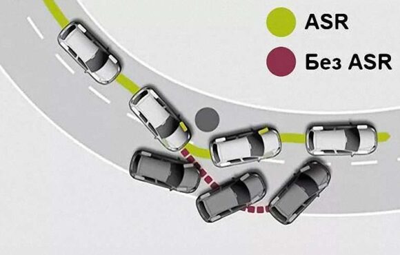 2. ASR регулирует проскальзывание колес при разгоне на скользких дорогах.